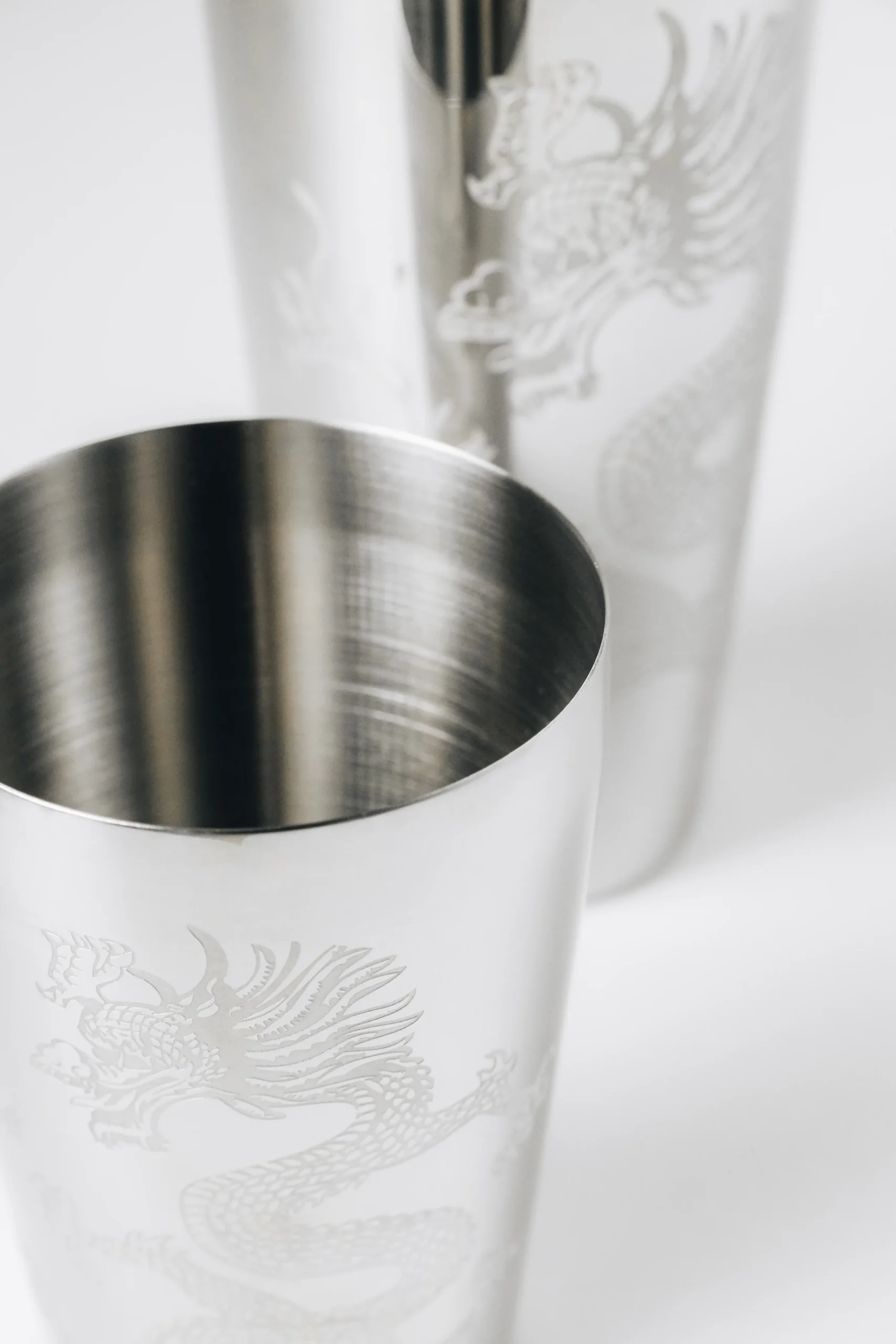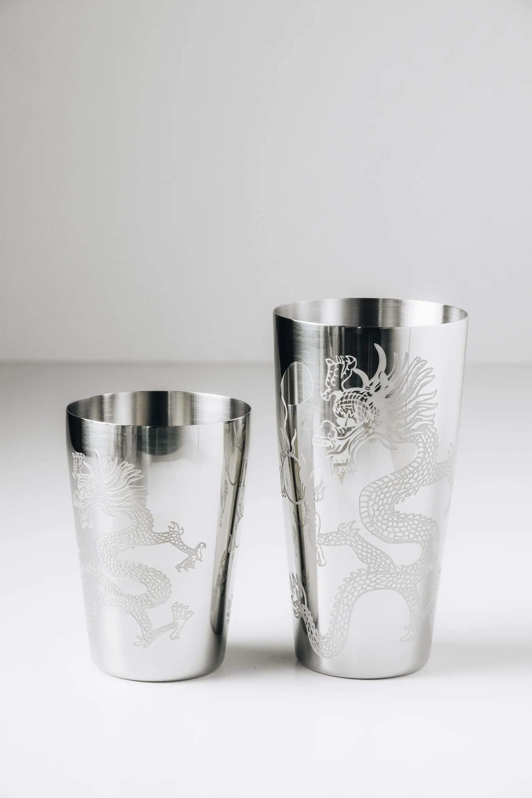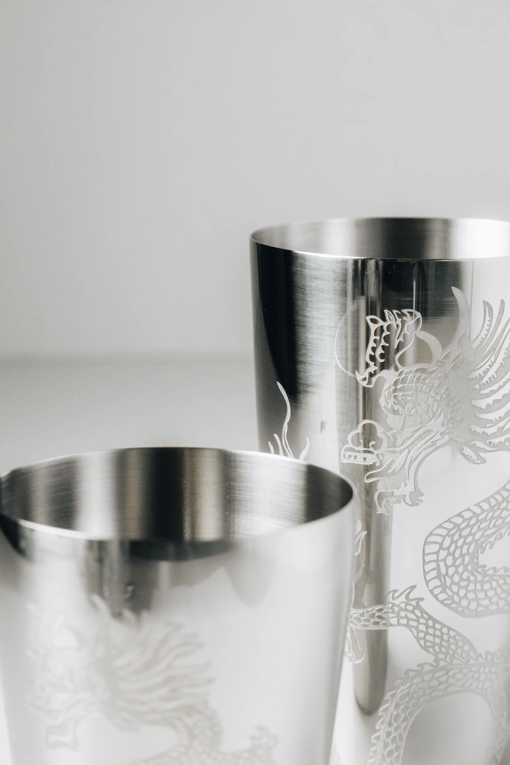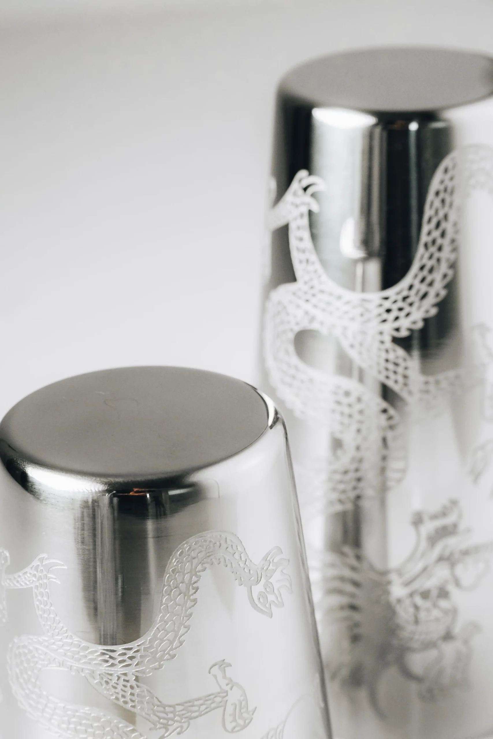 Zweiteiliger Boston Shaker aus Edelstahl 304 (18/8) mit elegant geätztem Muster: Zutaten in die 500-ml-Tin, mit der 800-ml-Tin verschließen, kräftig shaken – fertig. Profi-Qualität für professionellen Bar oder privat gebrauch.