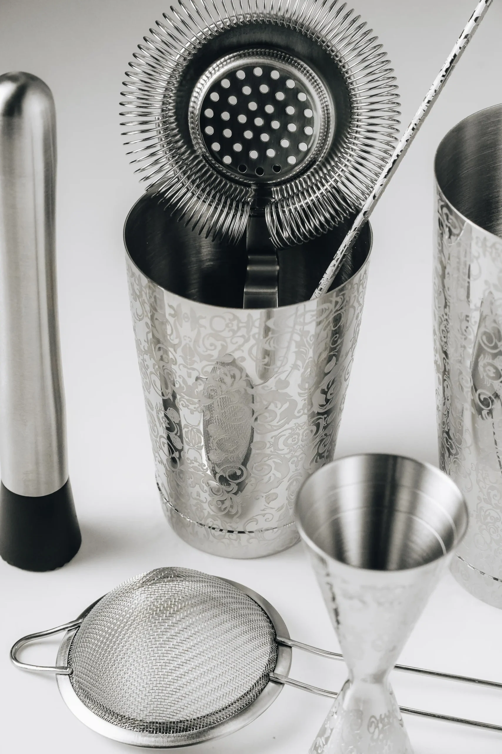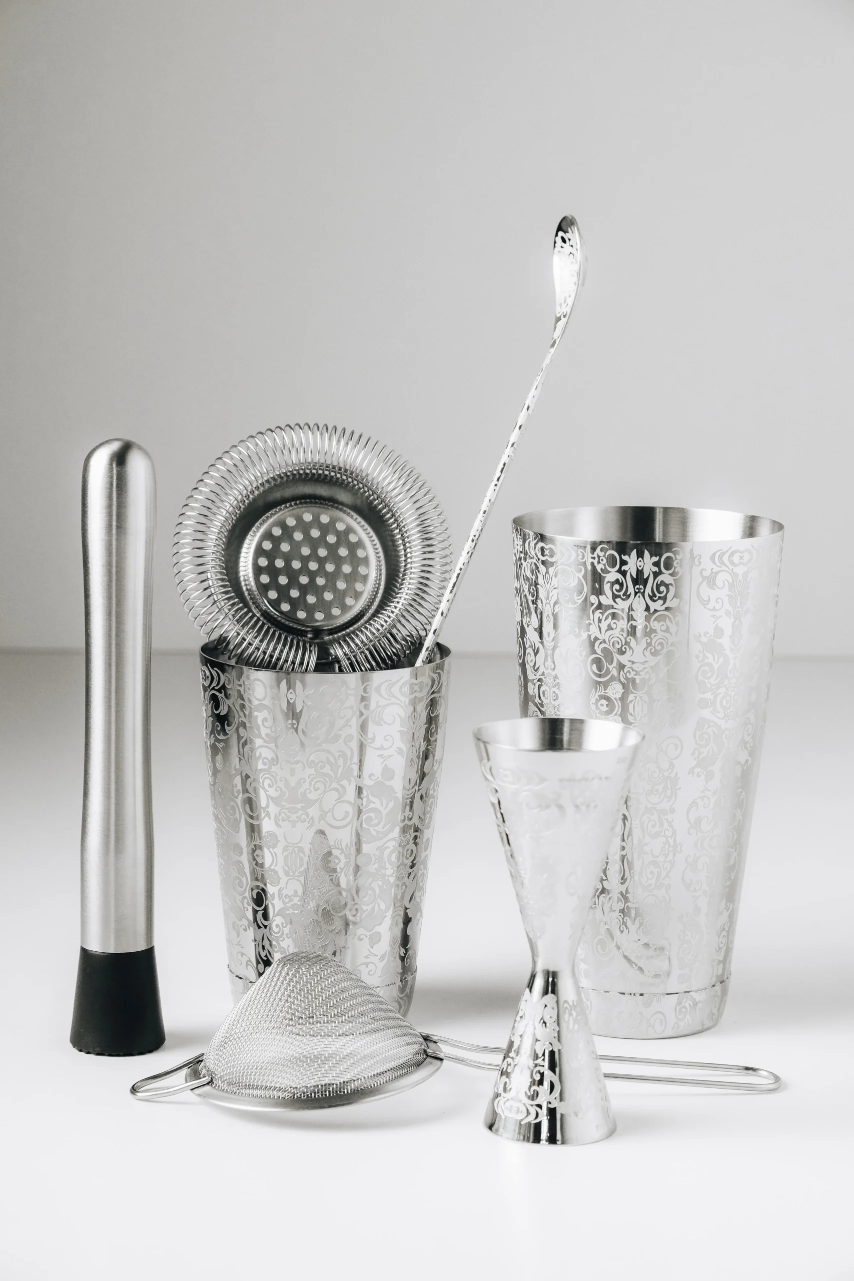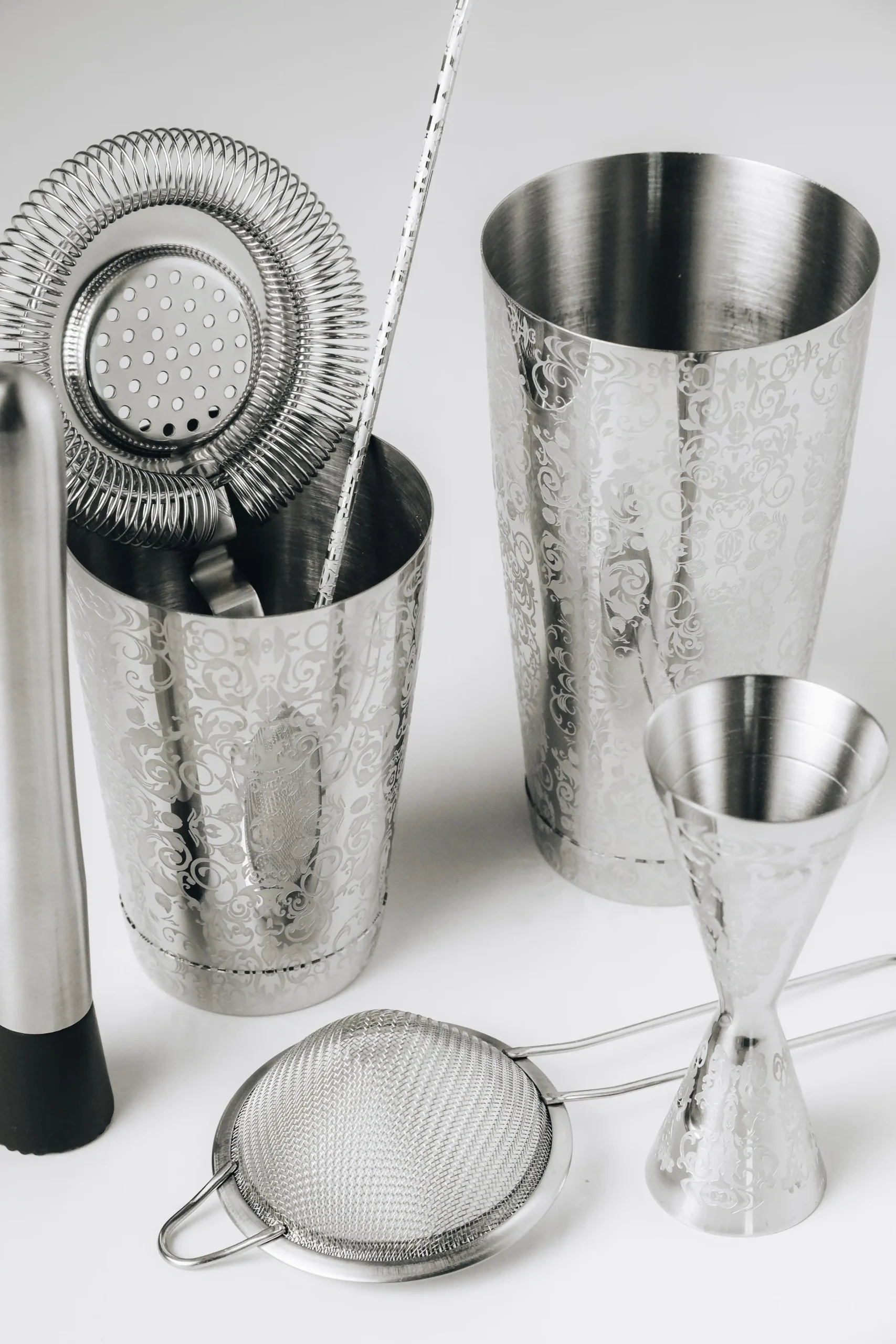 Alles, was du für den perfekten Start in die Welt der Cocktails brauchst: Unser Cocktail Shaker Set vereint sechs hochwertige Bar-Tools in passender Optik. Egal ob Einsteiger oder Profi – mit diesem Set bist du bestens ausgestattet, um Cocktails stilvoll und präzise zuzubereiten.