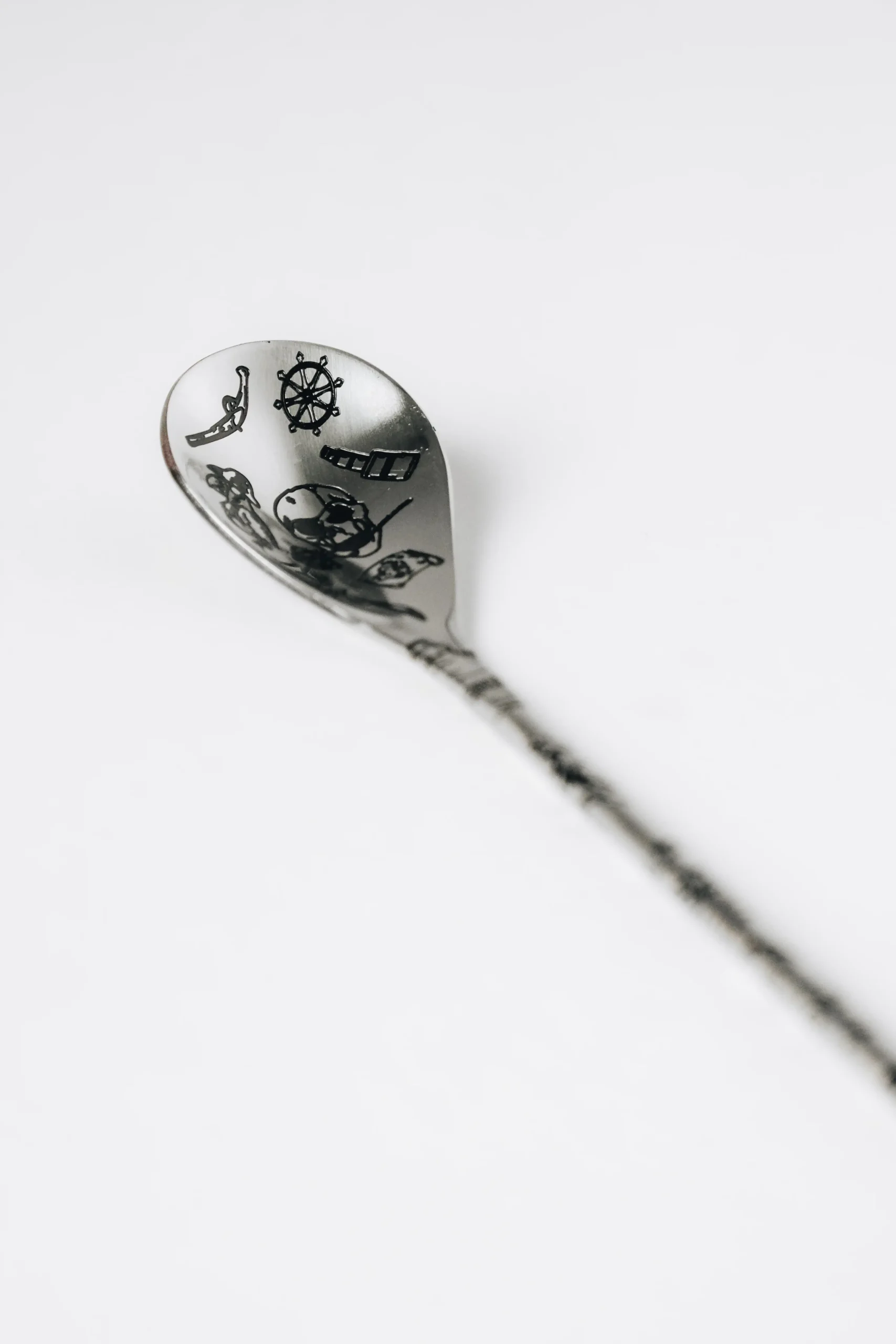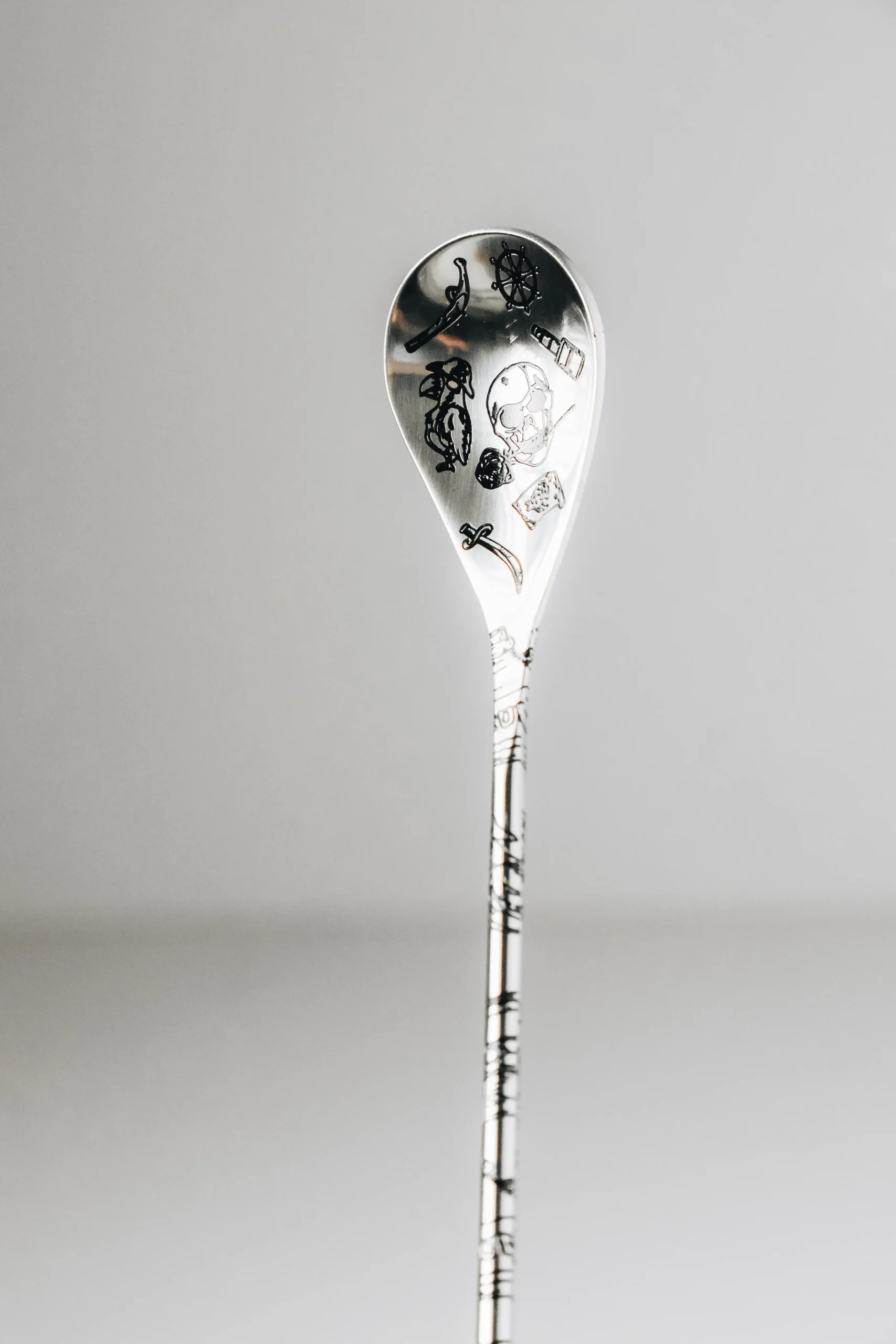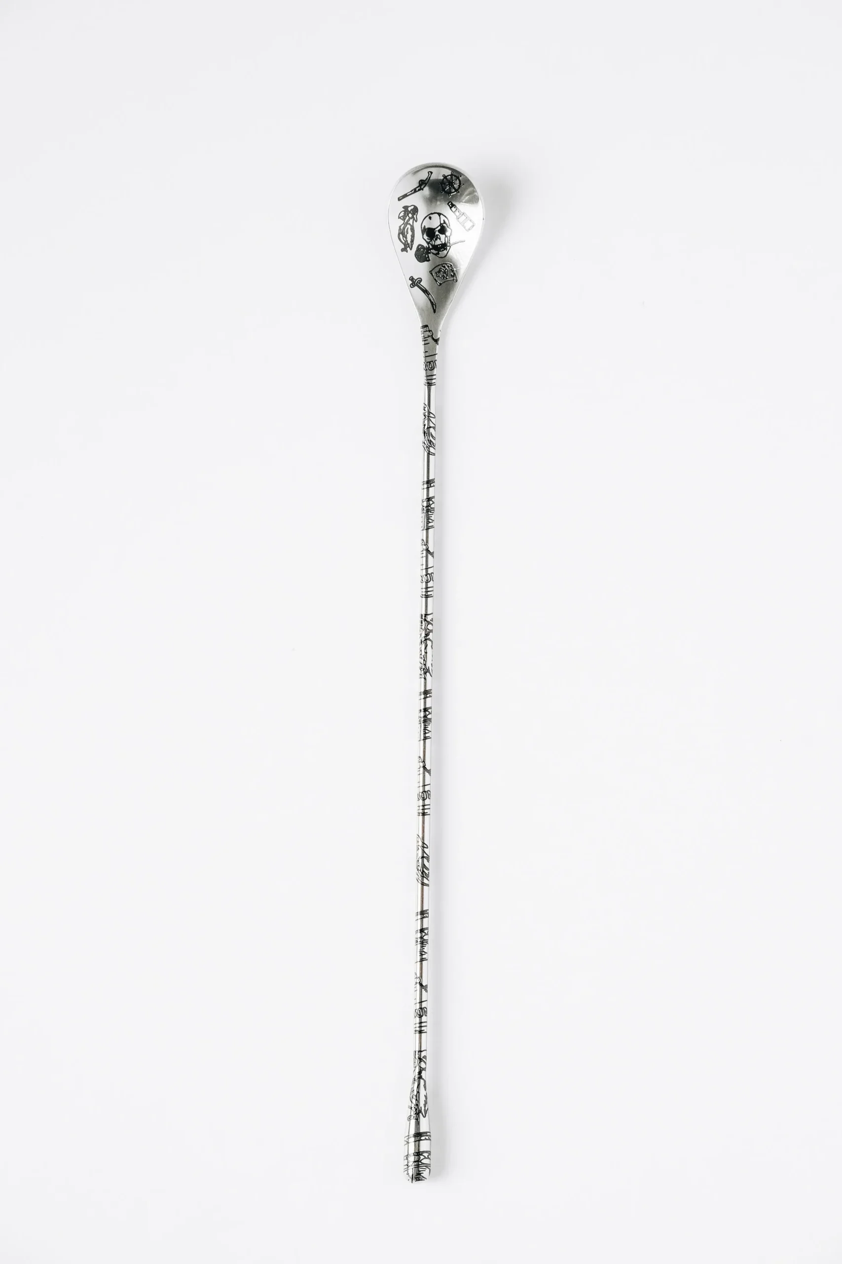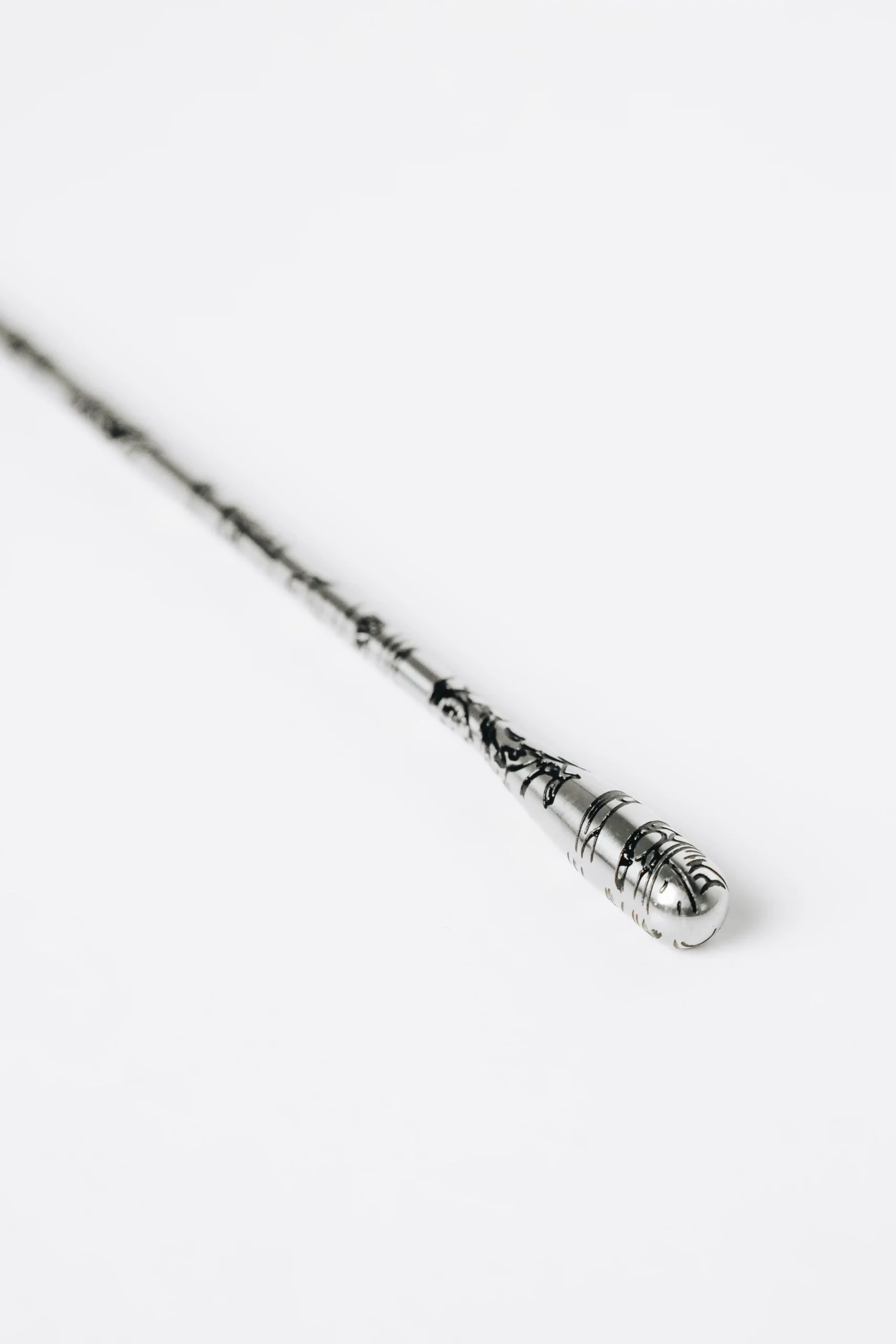 Eleganter Barlöffel aus Edelstahl mit fein graviertem Muster – das ideale Werkzeug zum Rühren und Schichten von Cocktails. Mit 30 cm Länge perfekt geeignet für Longdrinks, hohe Gläser und Rührgläser.