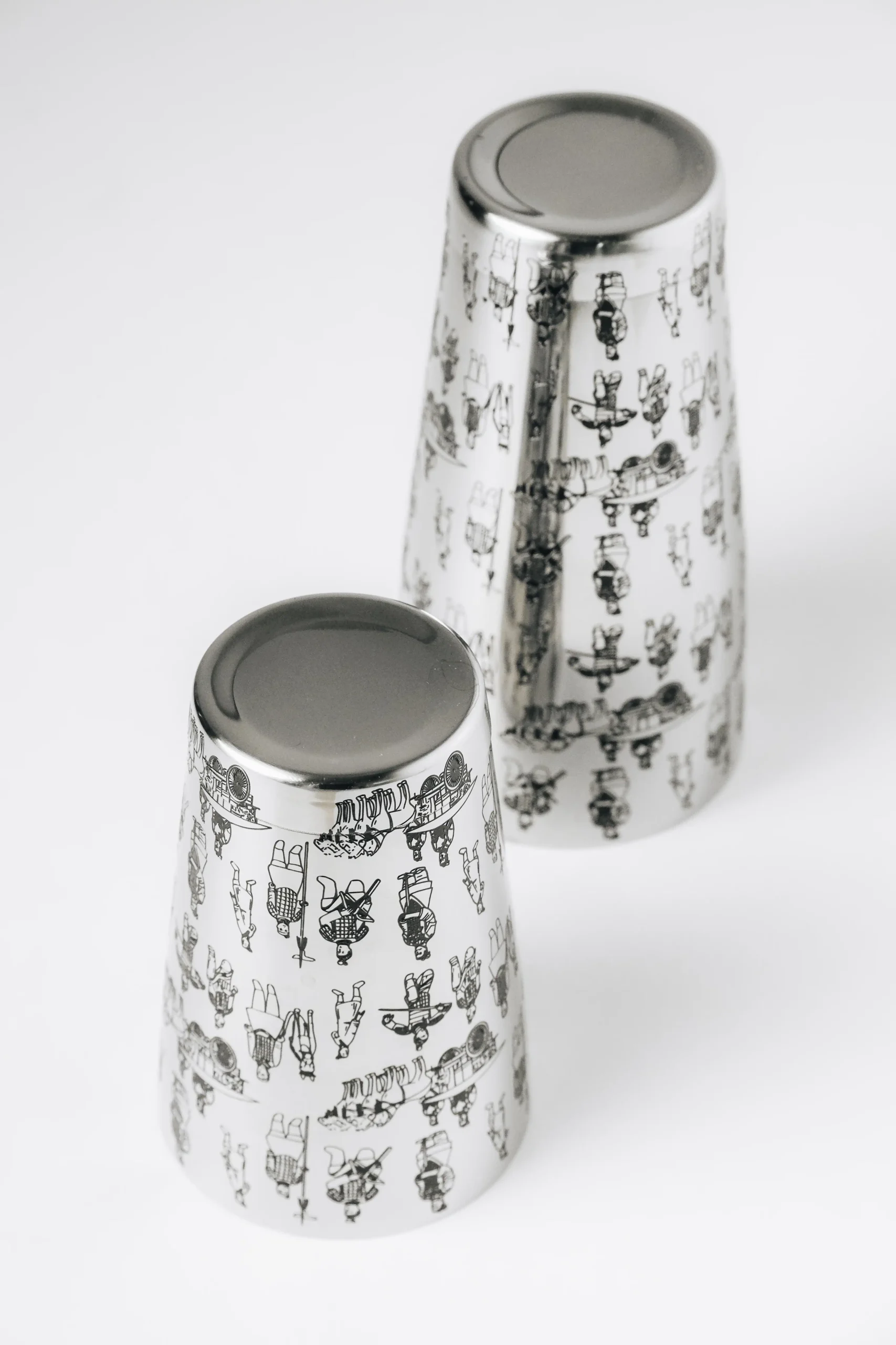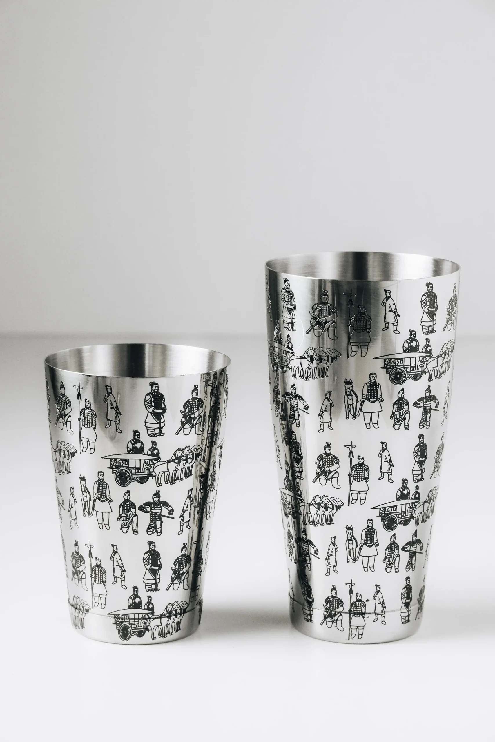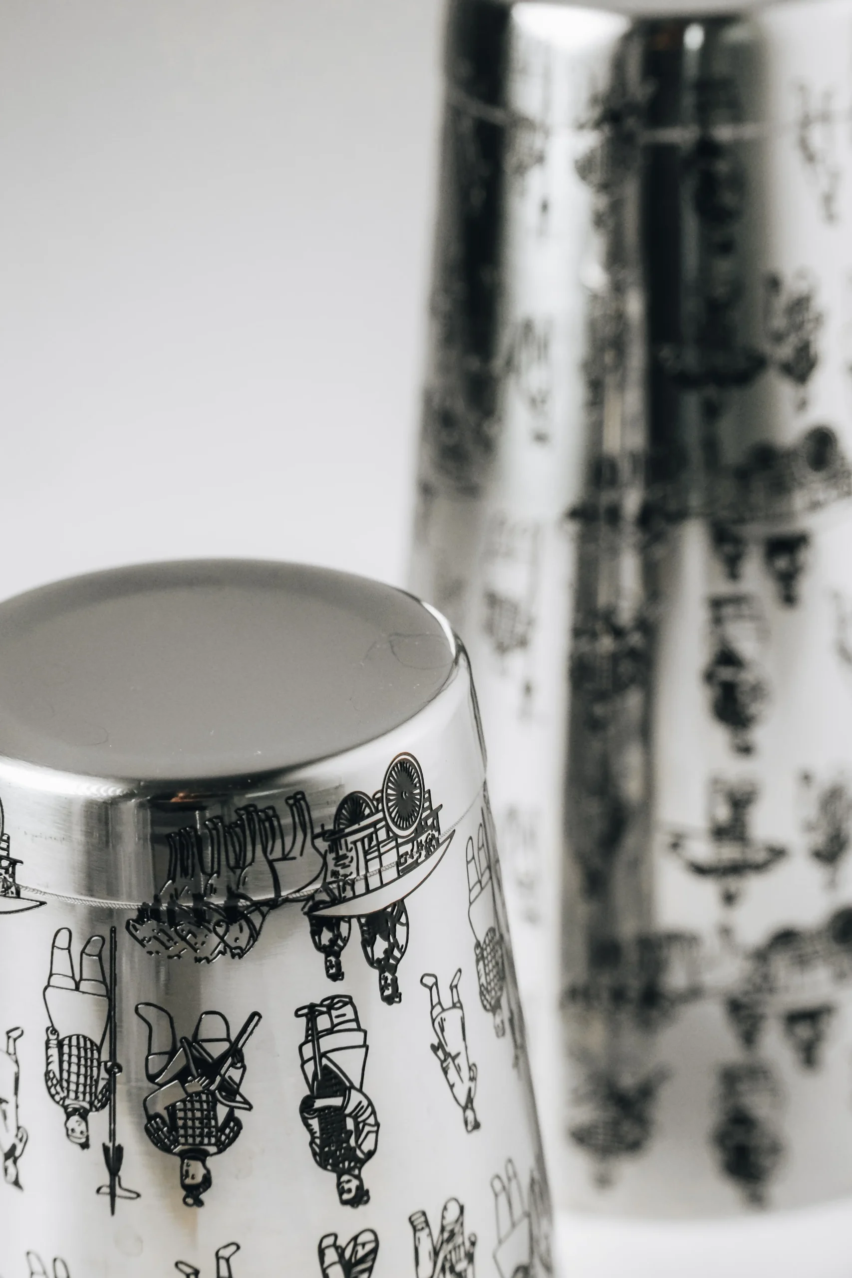 Zweiteiliger Boston Shaker aus Edelstahl 304 (18/8) mit elegant geätztem Muster: Zutaten in die 500-ml-Tin, mit der 800-ml-Tin verschließen, kräftig shaken – fertig. Profi-Qualität für professionellen Bar oder privat gebrauch.