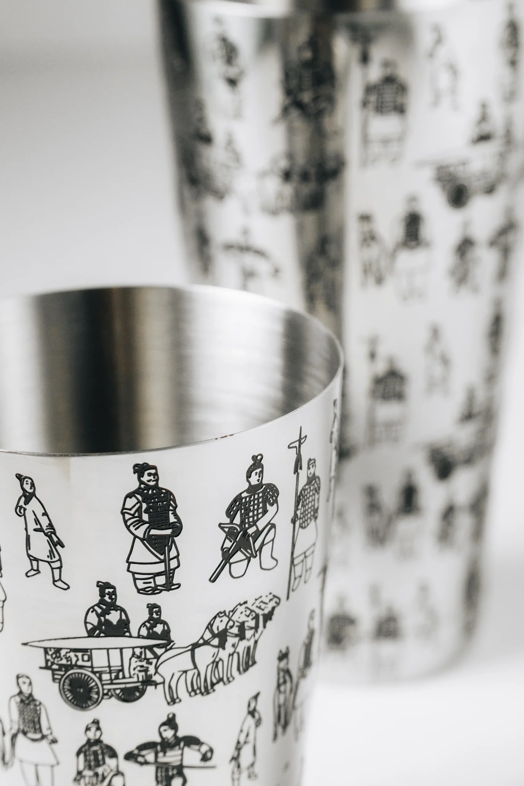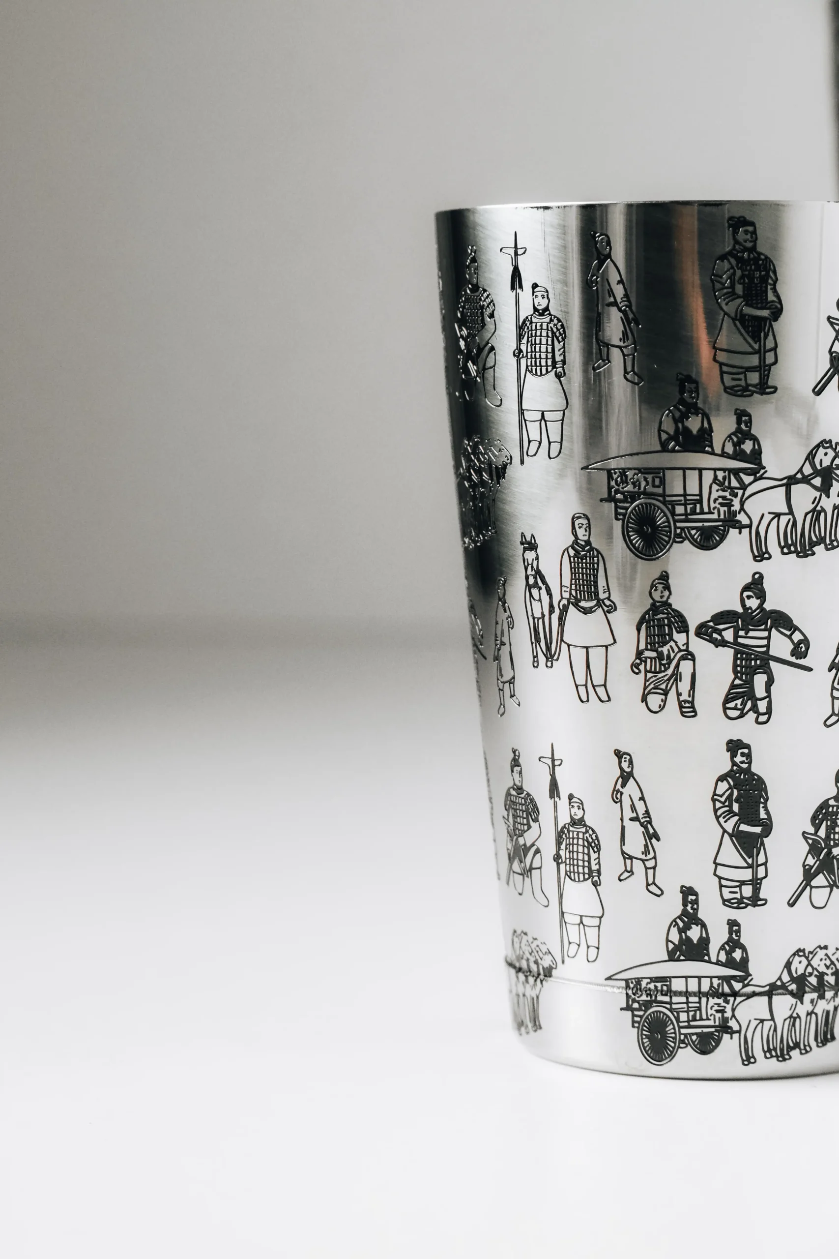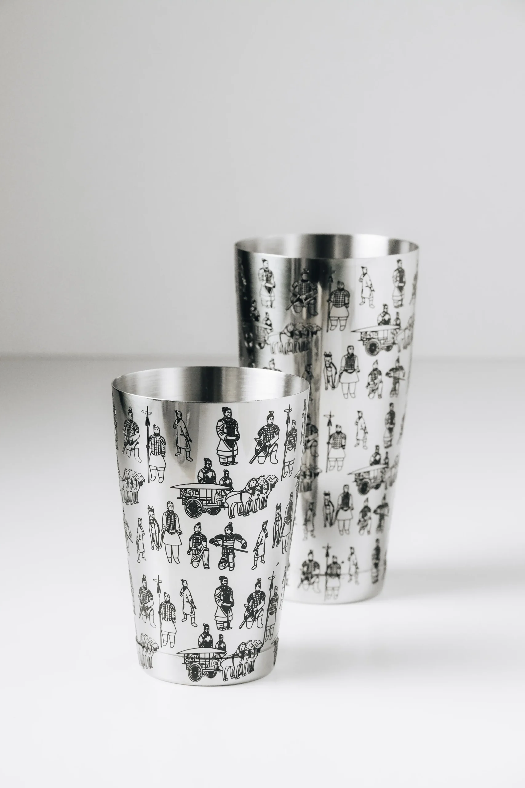 Zweiteiliger Boston Shaker aus Edelstahl 304 (18/8) mit elegant geätztem Muster: Zutaten in die 500-ml-Tin, mit der 800-ml-Tin verschließen, kräftig shaken – fertig. Profi-Qualität für professionellen Bar oder privat gebrauch.